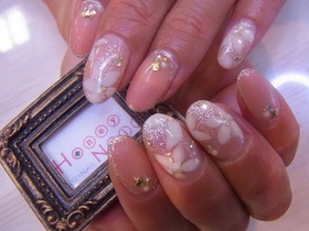 秋を意識した深めなベージュとラメでクリア感のあるベースに